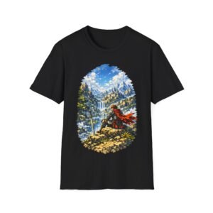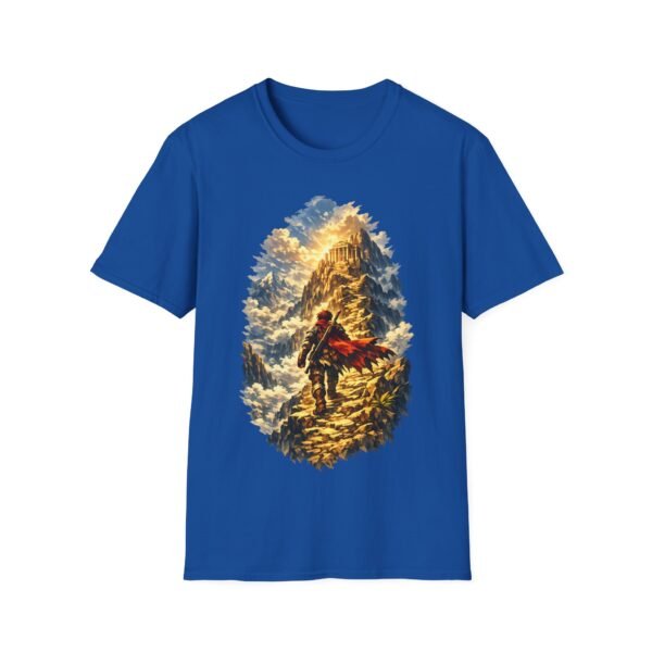 A lightweight, breathable tee that tells a quiet story of ascent. The design shows a lone hero striding toward a mountain temple — a moment of steady focus, worn by someone who chases early-morning trails, shrine visits, or long drives to nowhere in particular. The soft ring-spun cotton feels gentle against the skin while the clean crew neck and classic cut keep the silhouette simple so the artwork can do the talking. Wear it on cool dawn hikes, layered under a jacket for temple pilgrimages, or folded into a daypack for spontaneous road trips. Subtle natural flecks in the unprocessed color and a tear-away label keep comfort honest and low-key, while durable printing methods ensure the scene holds up after many wash-and-wear adventures.