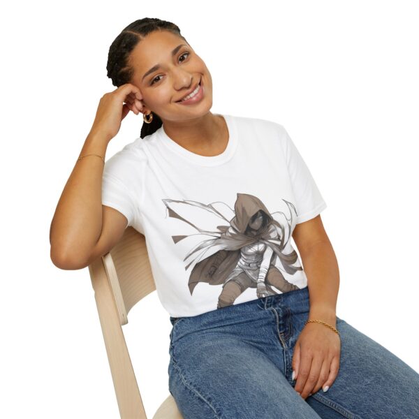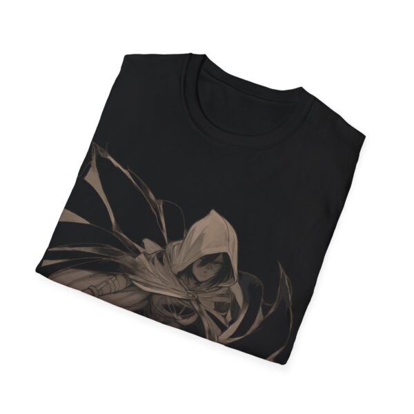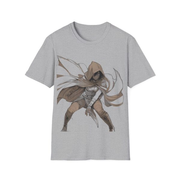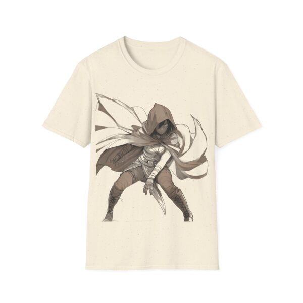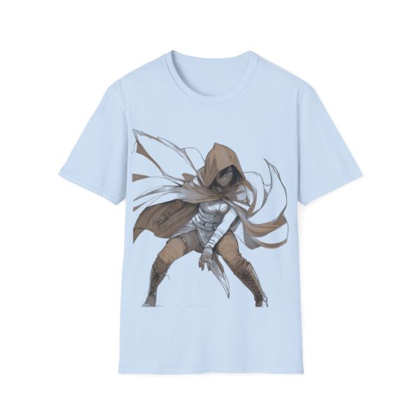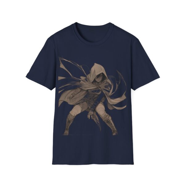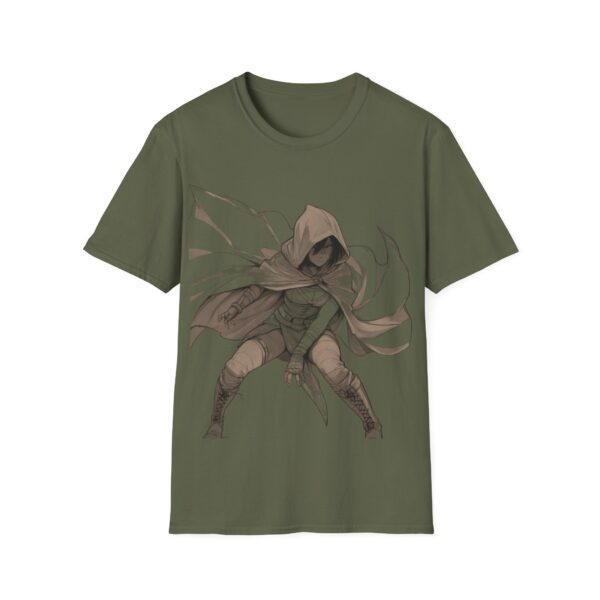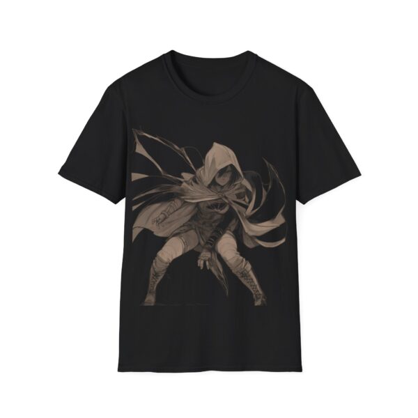 A lightweight, crew-neck tee that carries a quiet, shadowy edge. The soft ring-spun cotton feels breathable against the skin while the striking hooded rogue illustration anchors the front with motion and mood. This shirt layers easily under a jacket or stands alone when you want your look to speak in whispers—worn by gamers, cosplayers, and anyone drawn to dark-fantasy style. Durable construction and stable ribbed collar keep the shape through repeat wear; tear-away label and smooth tubular knit make it comfortable for long conventions, late-night streams, or everyday urban adventuring.